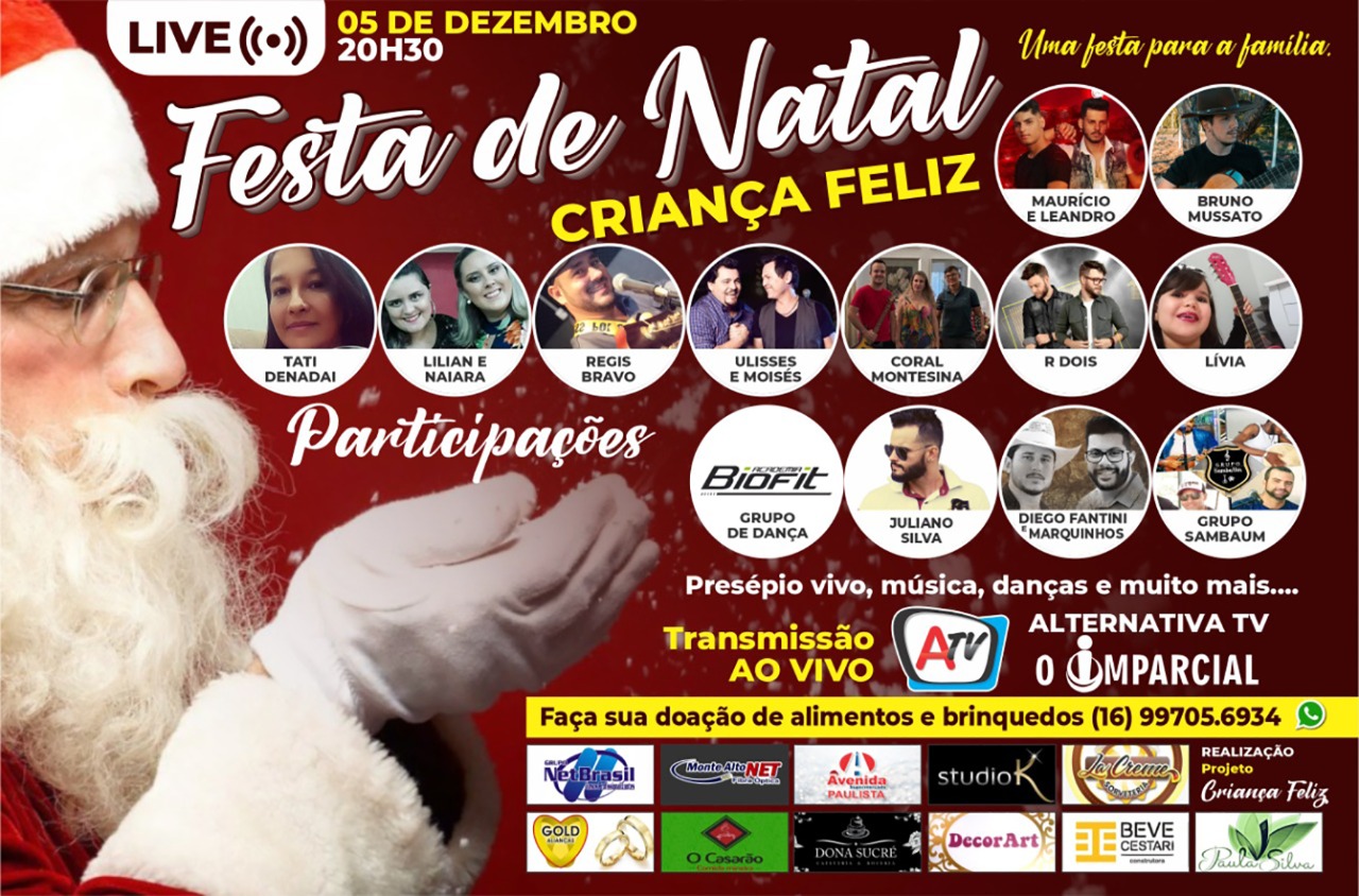Sábado, 5 de dezembro, é dia de live natalina Presépio vivo, música, dança e muito mais, farão parte do evento 4 de dezembro de 2020