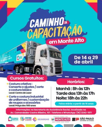 Cursos gratuitos de qualificação profissional estão com inscrições abertas em Monte Alto Iniciativa oferece formação em confecção e costura com aulas em carretas adaptadas 9 de abril de 2026