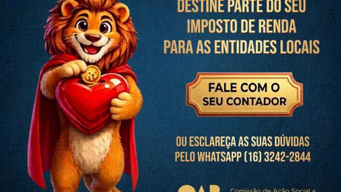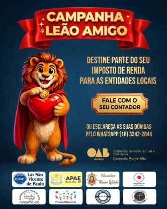 OAB Monte Alto inicia campanha “Leão Amigo” e reforça conscientização sobre destinação do Imposto de Renda Ação destaca importância da participação da população para fortalecer projetos sociais do município 9 de abril de 2026