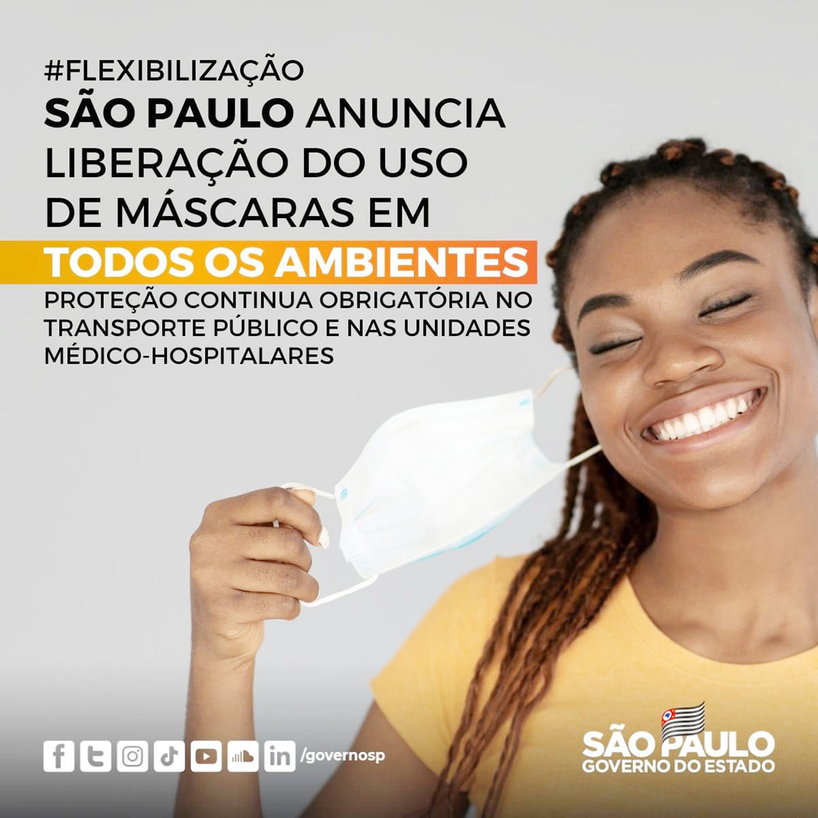 São Paulo retira obrigatoriedade do uso de máscara em locais fechados Proteção continua obrigatória nos transportes públicos e unidades hospitalares 18 de março de 2022