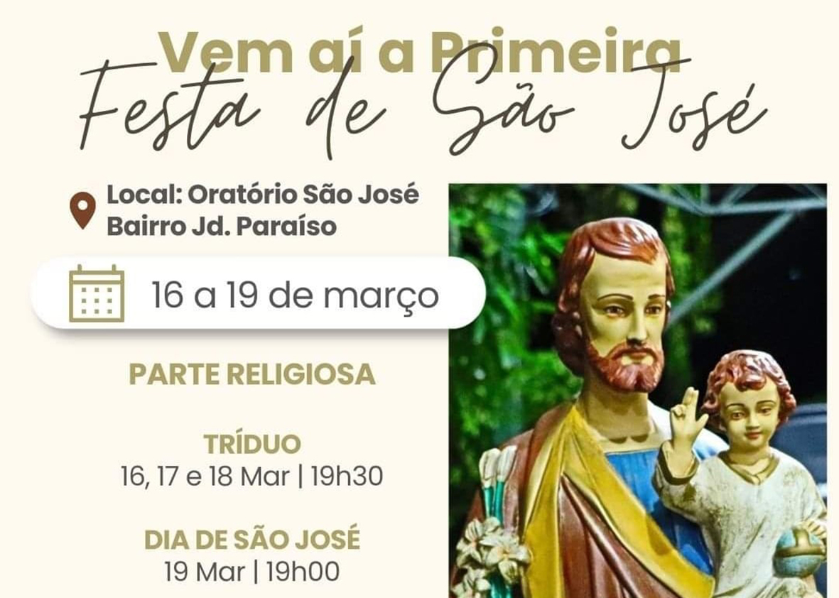 Paróquia do Senhor Bom Jesus organiza tríduo e Festa de São José Celebrações serão realizadas no oratório de São José, no Jardim Paraíso 11 de março de 2022