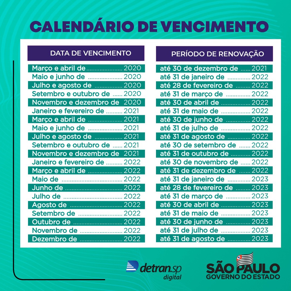 Detran-SP informa que prazo para renovar CNHs vencidas em maio e junho de 2020 termina em janeiro Motoristas devem regularizar documento no prazo para evitar multas; serviço pode ser feito de forma online, por canais do departamento ou Poupatempo 14 de janeiro de 2022