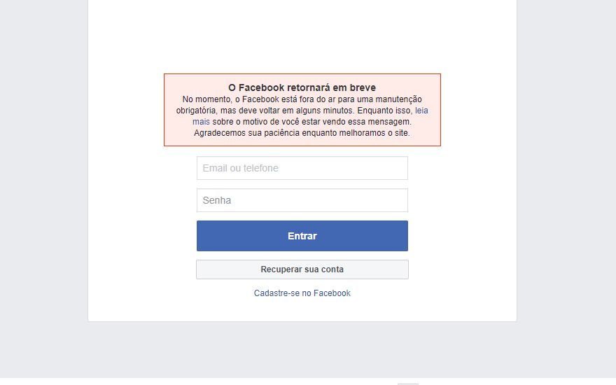 Facebook, Instagram e WhatsApp apresentam instabilidade Redes sociais estão com problemas para carregar conteúdo e para o envio de fotos 13 de março de 2019
