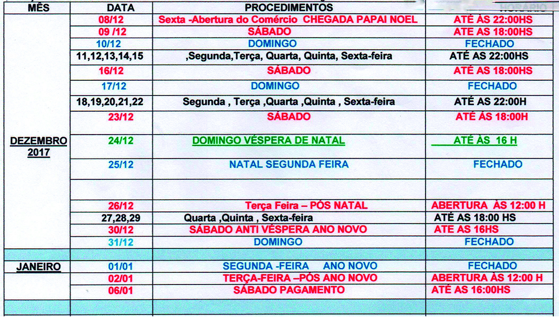 ACIMA divulga calendário do comércio em dezembro Horário especial, até às 22 horas, tem início no dia 8 3 de novembro de 2017