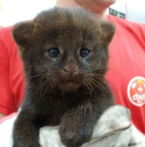 Raro filhote de onça preta do mato é resgatado por Bombeiros de Jaboticabal Animal foi entregue à Polícia Ambiental e em seguida a Unesp de Jaboticabal 26 de junho de 2017