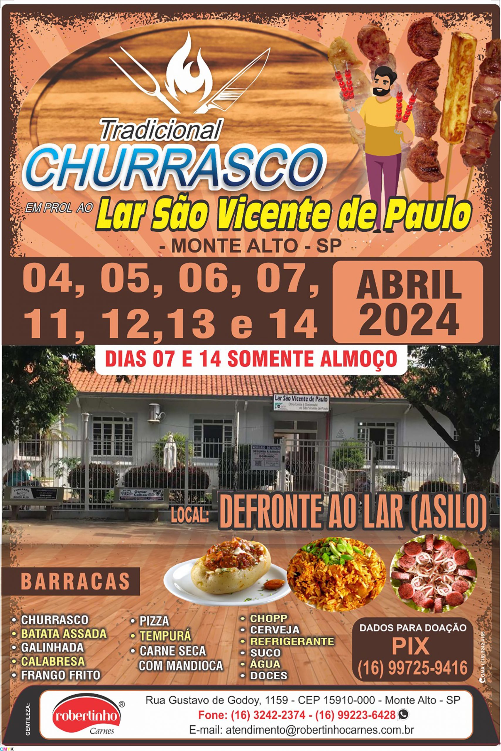 Lar São Vicente de Paulo dá início ao seu tradicional churrasco beneficente Festa acontece em dois finais de semana, em frente ao Asilo, com término no domingo, 14 de abril 5 de abril de 2024