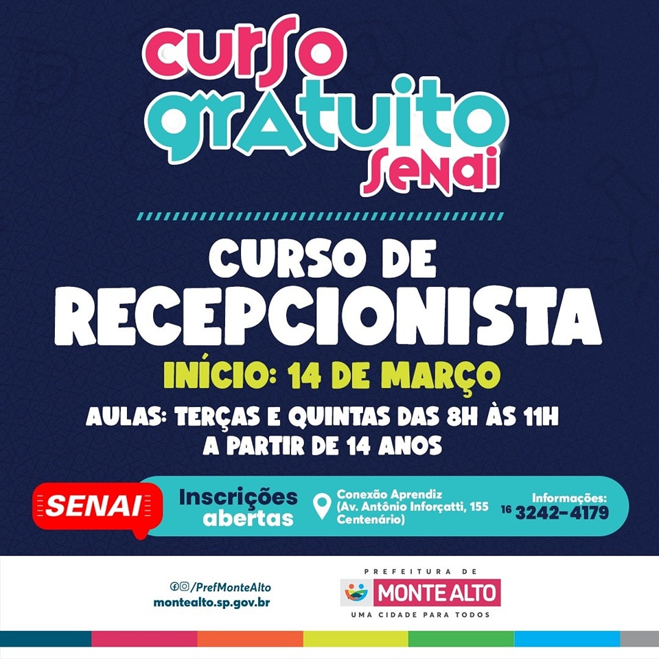 SENAI abre inscrições para curso de recepcionista Início das aulas está previsto para o dia 14 de março; curso terá carga horária de 60 horas 3 de março de 2023