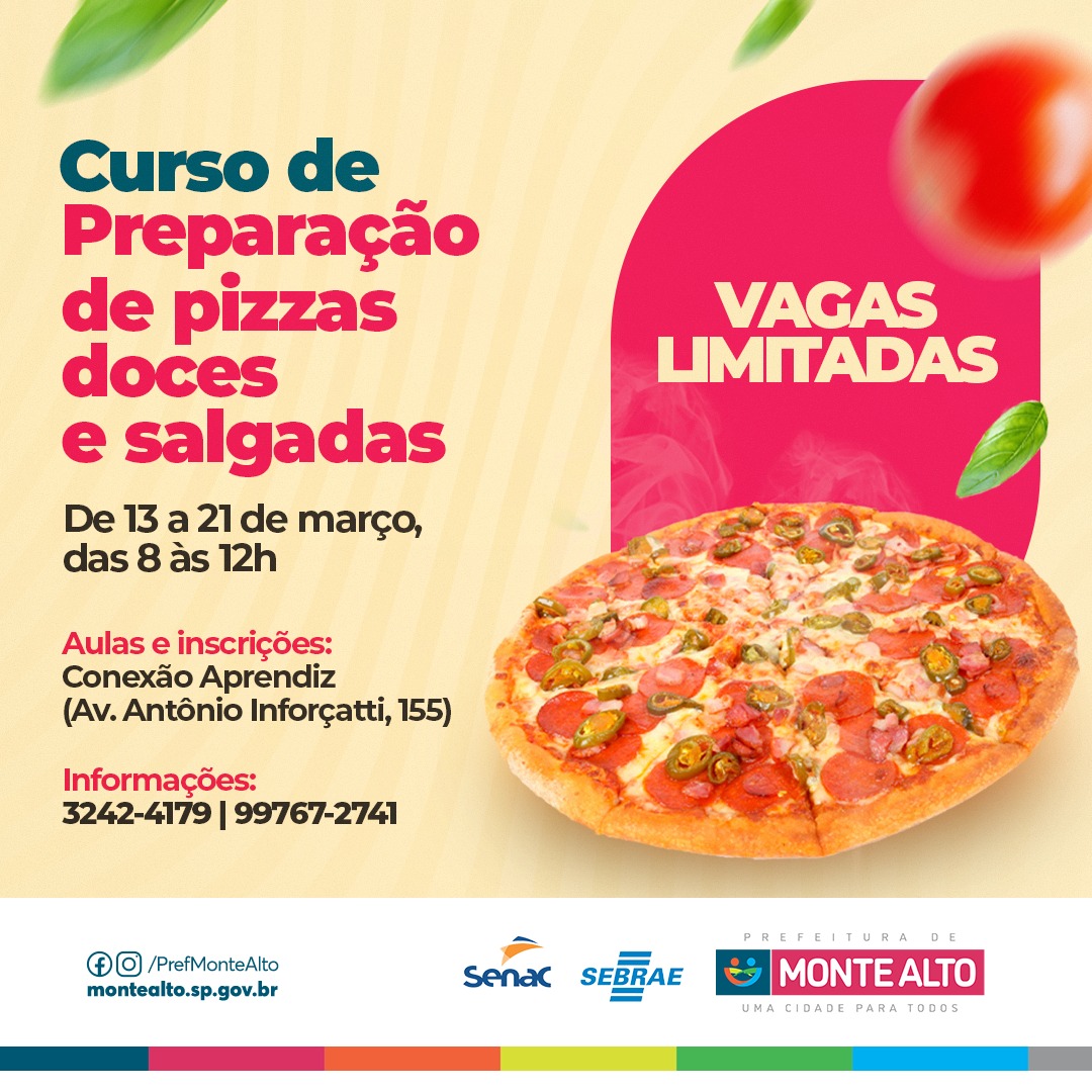 Prefeitura abre vagas para curso de preparação de pizzas Prefeitura abre vagas para curso de preparação de pizzas 3 de março de 2023