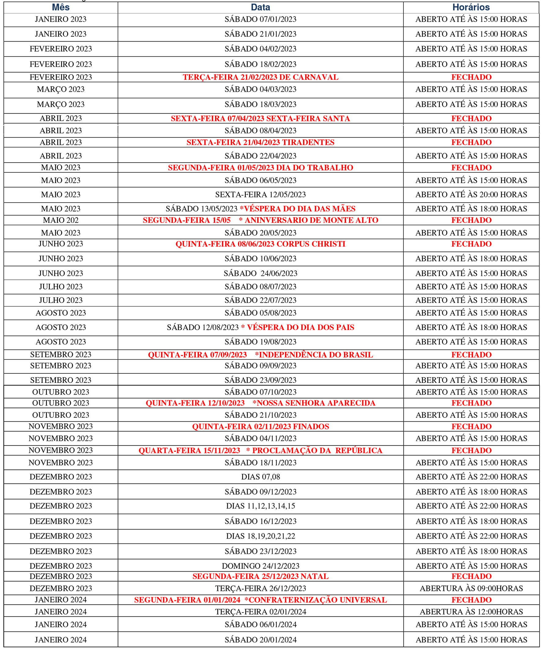 ACIMA divulga calendário de funcionamento do comércio para 2023 Lojas ficarão fechadas em dez feriados no ano 3 de fevereiro de 2023