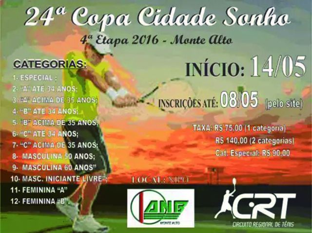 Circuito Regional de Tênis chega a Monte Alto Etapa local, que acontece na Nipo, será a quarta do Campeonato deste ano 13 de maio de 2016