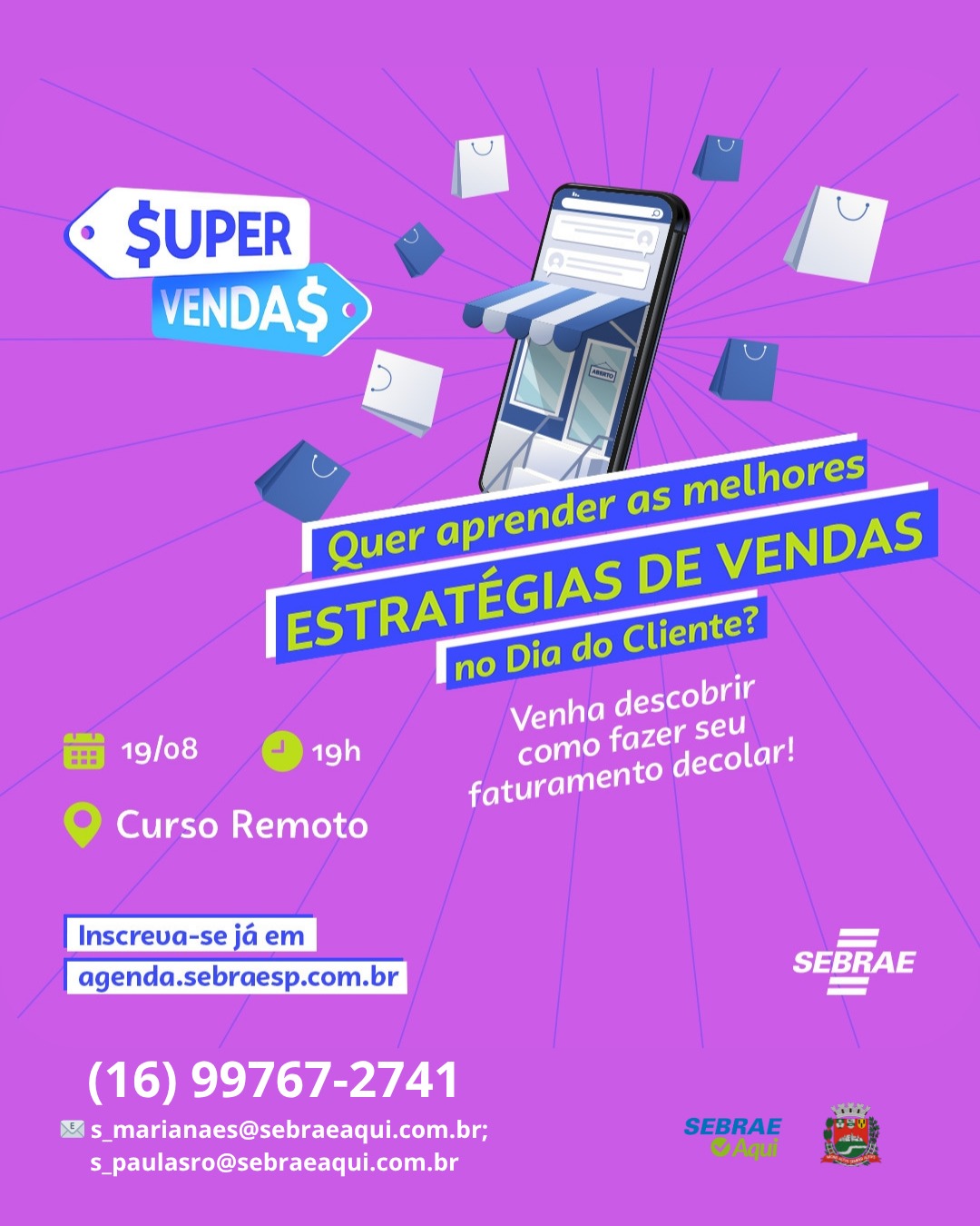 Sebrae oferece curso gratuito para impulsionar vendas no Dia do Cliente Capacitação online acontece no dia 19 e trará técnicas, ferramentas e dicas práticas para empreendedores 15 de agosto de 2025