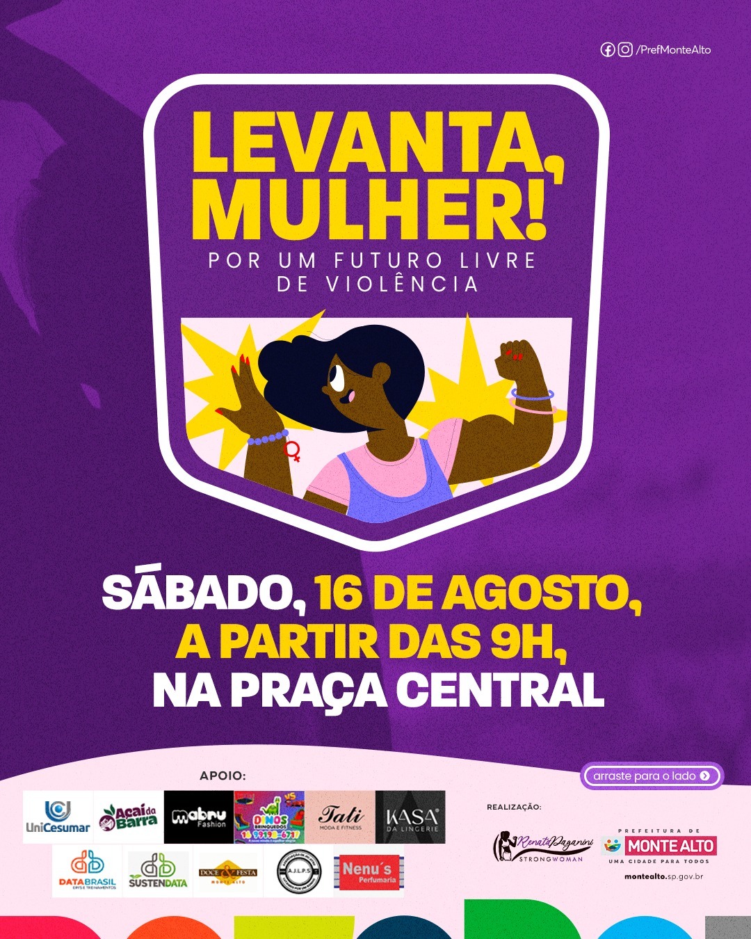 Levanta, Mulher! Evento em Monte Alto mobiliza comunidade no Agosto Lilás contra a violência feminina No sábado, 16 de agosto, a partir das 9h, a Praça Central de Monte Alto será palco do encontro “Levanta, Mulher!” 15 de agosto de 2025