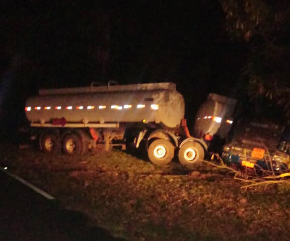 Caminhão tanque carregado perde controle e tomba próximo ao pedágio da serra Com risco de explosão, brigadistas e socorristas auxiliaram na remoção do veículo 14 de junho de 2019