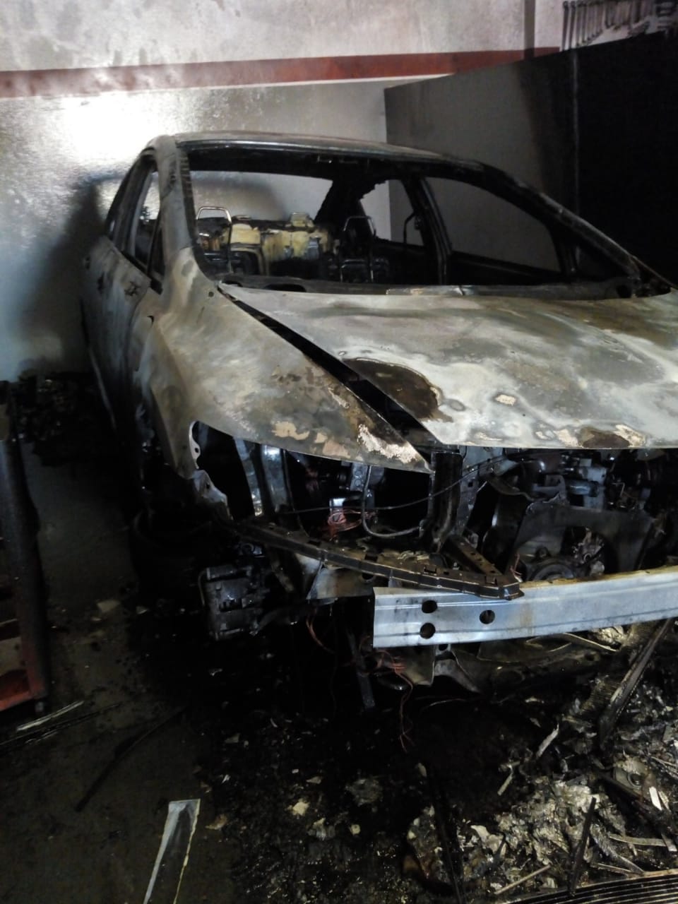 Carro pega fogo dentro de oficina mecânica Vizinhos viram a fumaça e acionaram a Brigada de Incêndio 21 de julho de 2018
