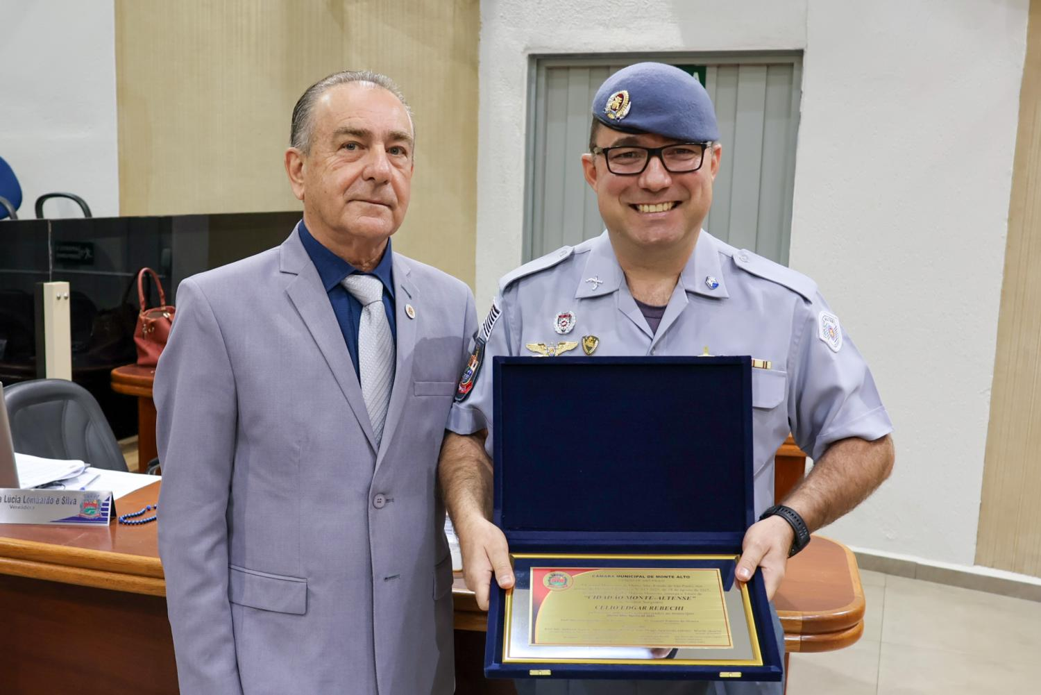 Sargento Célio Rebechi recebe Título de Cidadão Montealtense Com 22 anos de atuação na Polícia Militar, homenageado é reconhecido pela sua contribuição para o bem-estar social e o fortalecimento da cidadania 29 de agosto de 2025