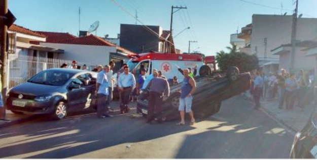 Carro capota na Rua Marechal Deodoro Condutora foi encaminhada para o Pronto Socorro com ferimentos leves 21 de janeiro de 2016
