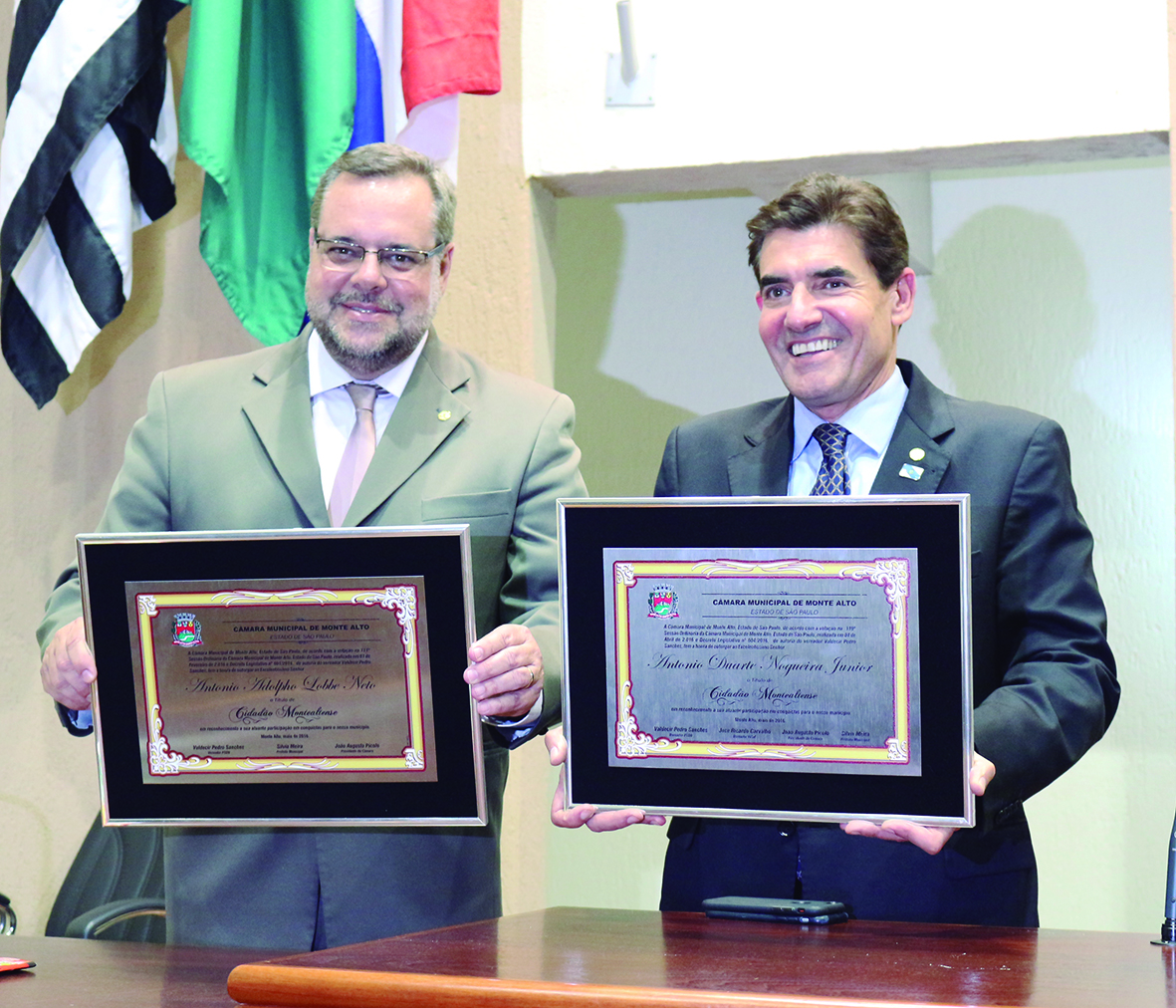 Lobbe Neto e Duarte Nogueira recebem Título de Cidadão Montealtense Honraria foi proposta pelo vereador Valdecir Sanches; parlamentares são responsáveis por inúmeras emendas que destinaram verbas ao município 8 de dezembro de 2016