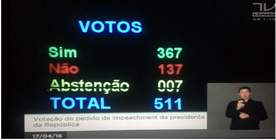 Com 367 votos a favor, processo de Impeachment segue para o Senado Após 24 anos, o Brasil pode ter novamente um presidente deposto 18 de abril de 2016