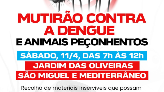 Jardins São Miguel, das Oliveiras e Mediterâneo recebem mutirão contra a dengue neste sábado, 11 Ação da Prefeitura reforça combate ao mosquito e orienta moradores sobre prevenção 9 de abril de 2026
