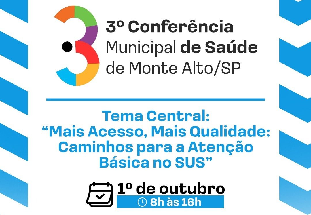 Monte Alto promove 3ª Conferência Municipal de Saúde em outubro Evento vai avaliar situação da saúde local e definir diretrizes para o Plano Municipal de Saúde 2026–2029 19 de setembro de 2025
