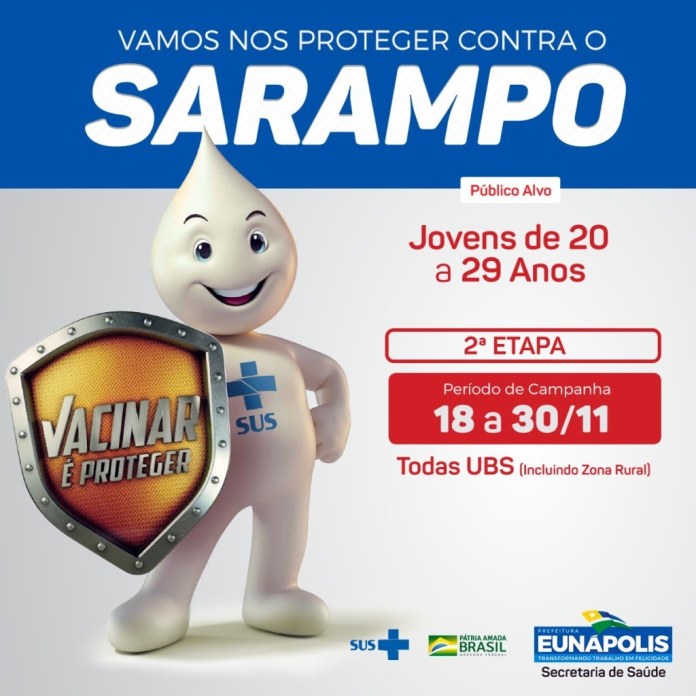 Jovens são alvo da segunda etapa da campanha de vacinação contra sarampo Mais de 11 milhões de doses da vacina tríplice viral serão enviadas para atender demanda da 2ª etapa da Campanha de Vacinação contra o Sarampo; “Dia D” será no sábado, 30 de novembro 22 de novembro de 2019