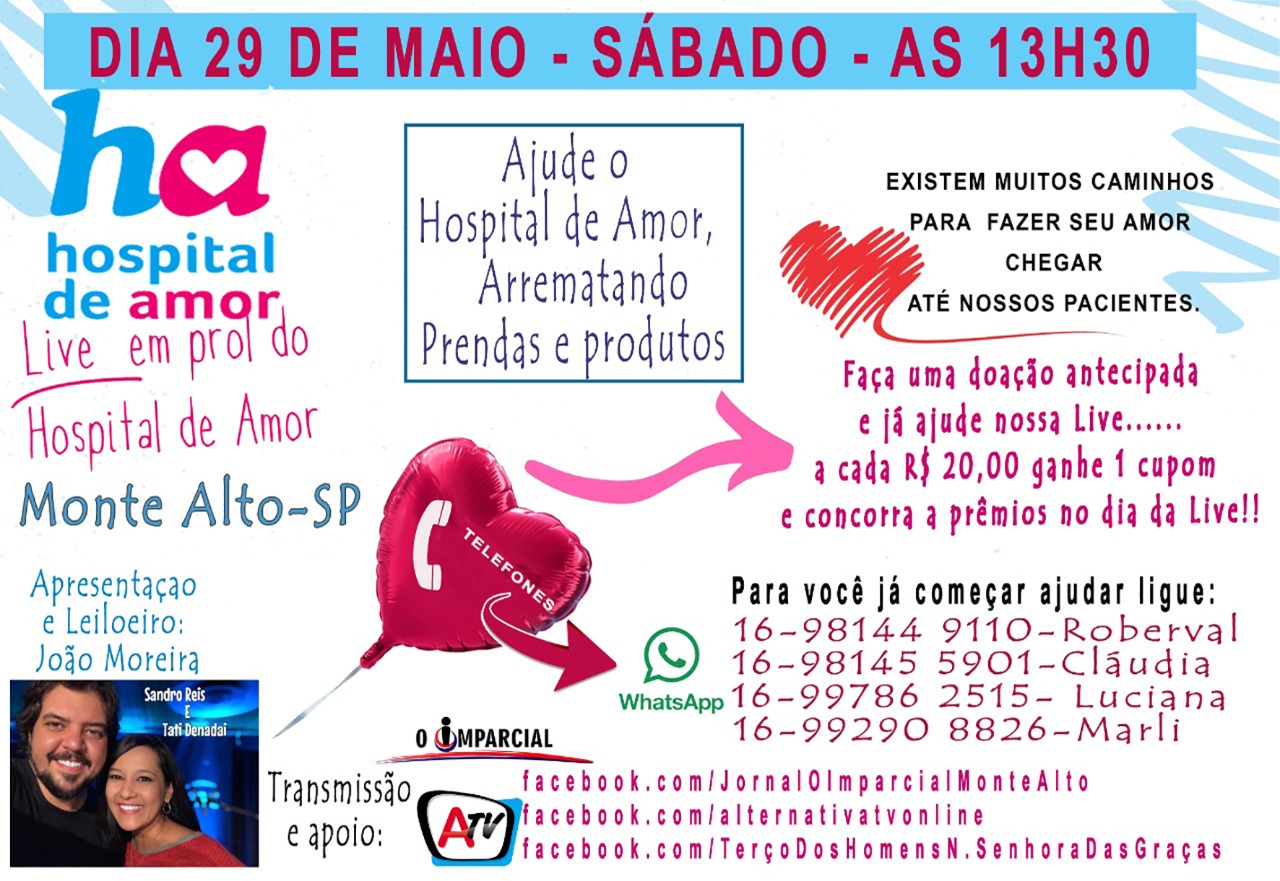Coordenadores organizam realização de live em prol do Hospital de Amor, com espaço para doações Toda a arrecadação será destinada ao Hospital, que atende 427 montealtenses 7 de maio de 2021