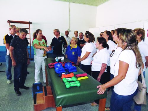A fisioterapeuta Gisele Zuqueto explica a funçã dos aparelhos doados: gratidão ao pedido atendido