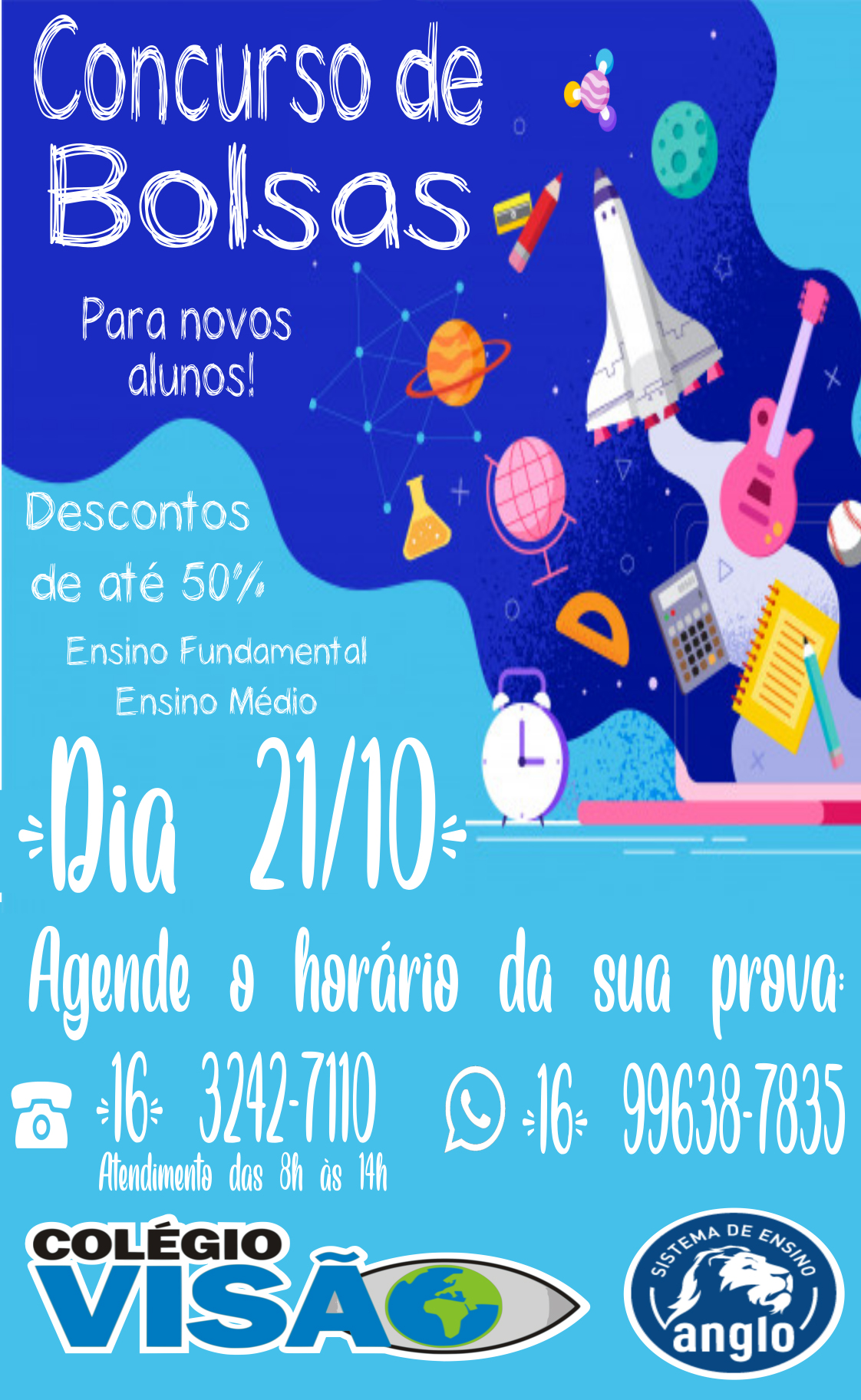 #ConcursoDeBolsas Está marcado para o dia 21 de outubro, o Concurso de Bolsas promovido pelo Colégio Visão Anglo para… 9 de outubro de 2020