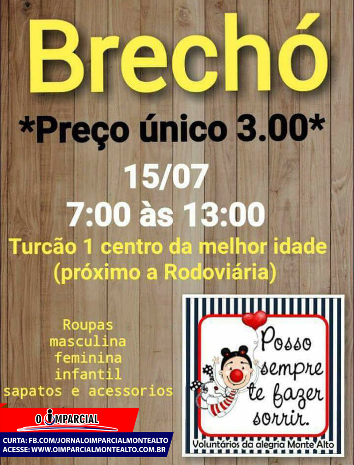 #Colabore O grupo Voluntários da Alegria, realizará um brechó neste sábado, 15, das 07h às 13h, no Centro de… 12 de julho de 2017