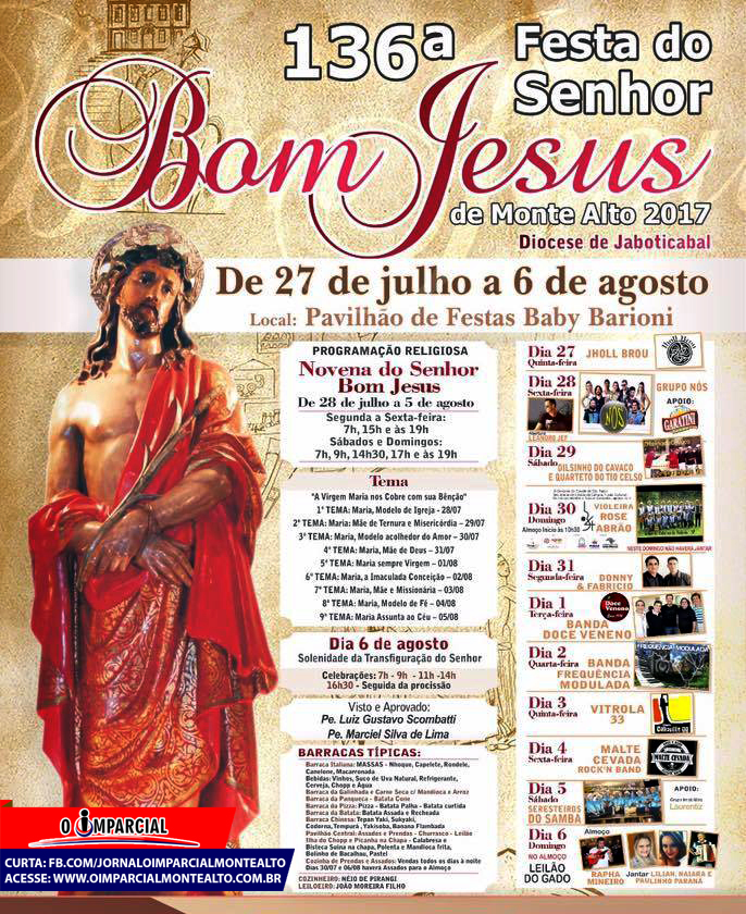 #VEM_AÍ Daqui duas semanas inicia uma das festas mais aguardadas de Monte Alto. A festa do Senhor Bom Jesus,… 11 de julho de 2017