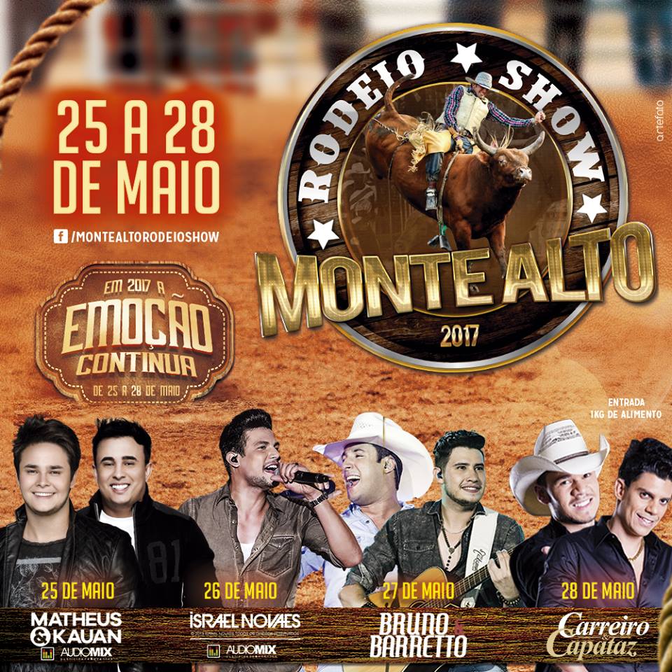 MAIS UM Com shows de Bruno & Barreto e Israel Novaes, já anunciados, a organização do Monte Alto Rodeio Show… 10 de março de 2017