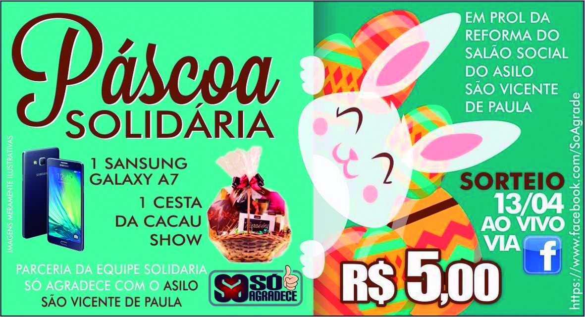 SOLIDARIEDADE Na terça-feira, 14 de março, o grupo “Só Agradece” iniciou a Campanha de Páscoa junto ao Lar São… 31 de março de 2017