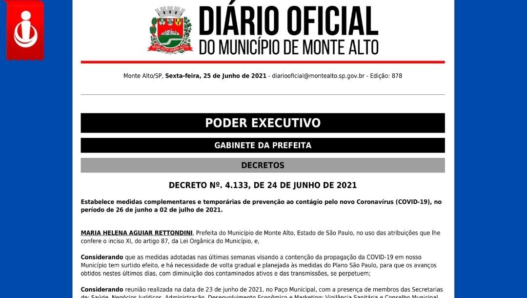 #NOVO_DECRETO Prefeitura publica novo decreto com as medidas complementares para o final de semana e também a próxima semana.… 25 de junho de 2021