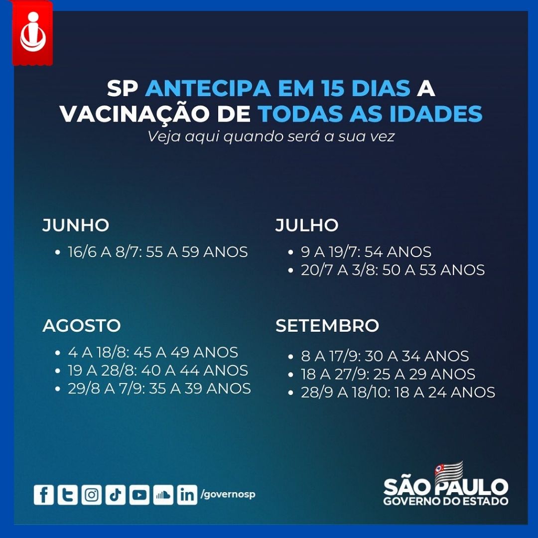 #VacinaParaTodos O Governo do Estado de São Paulo, anunciou hoje, que conseguiu antecipar o cronograma de vacinação e vai… 9 de junho de 2021
