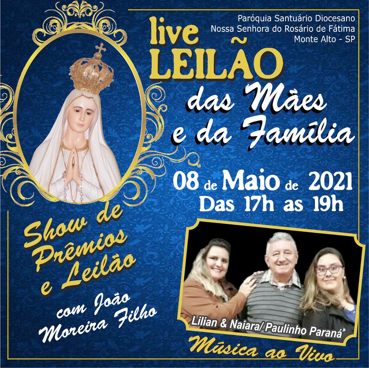 LIVE A Paróquia Nossa Senhora do Rosário de Fátima organiza a realização de uma live Leilão das Mães e… 7 de maio de 2021