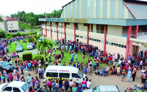 Aglomeração no “José Pizarro” antes do início dos trabalhos na terça-feira, dia 18; no total, mais de 3 mil montealtenses retiraram seus agendamentos