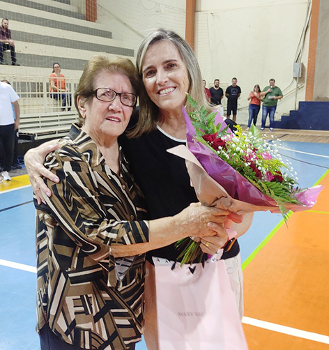 Stelinha recebeu flores de sua mãe, D. Zezinha e mimos das mães das atletas