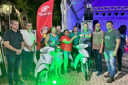 Começando pelas motos, a cliente do Avenida Supermercado, Maria Izabel Trivelato, e Everaldo César Sando, que efetuou suas compras na loja MK Materiais para Construção – que já havia contemplado outros clientes em etapas anteriores da campanha – foram os ganhadores das Honda Biz.