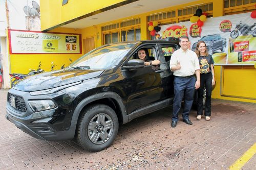 Página Inicial Dia a Dia Amarelinha Supermercados entrega moto Honda CB500F e Fiat Toro da campanha “Você Montado na Sorte” chave