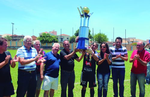 Wilson, goleiro da Aparecida, recebe o troféu de campeão