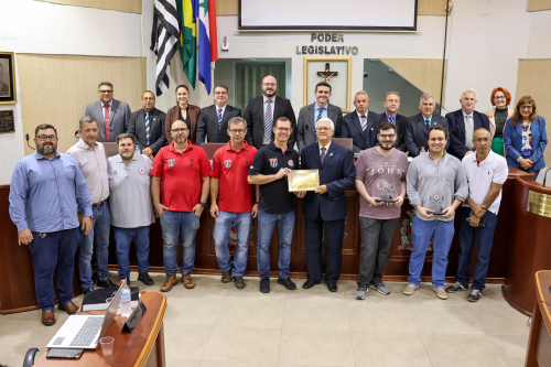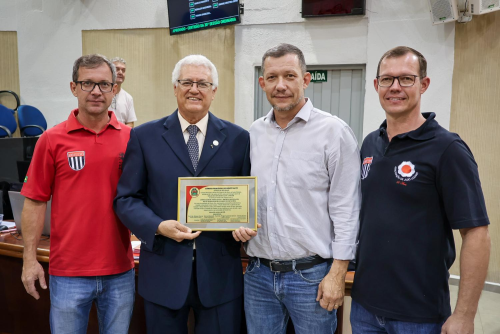 Representando a entidade, Rodrigo Lozano, acompanhado dos irmãos Robson e Danilo, fez uso da Tribuna para agradecer o reconhecimento.