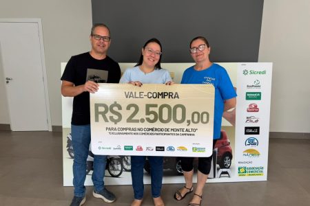 Os ganhadores dos vales-compras foram Felippe Eduardo Ferreira Vital, cliente do Filé Centro Automotivo; Aliny Ferreira Dias, que fez suas compras no Ofertão das Fábricas; Aline de Cássia Perini Piccolo, cliente da Farmácia Homeovida; e Rodrigo Lampa, que comprou na NP Materiais para Construção.