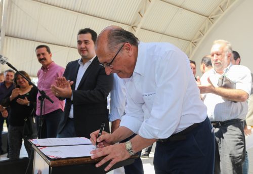 Governador durante assinatura de convênio com a prefeitura para repasse de recurso