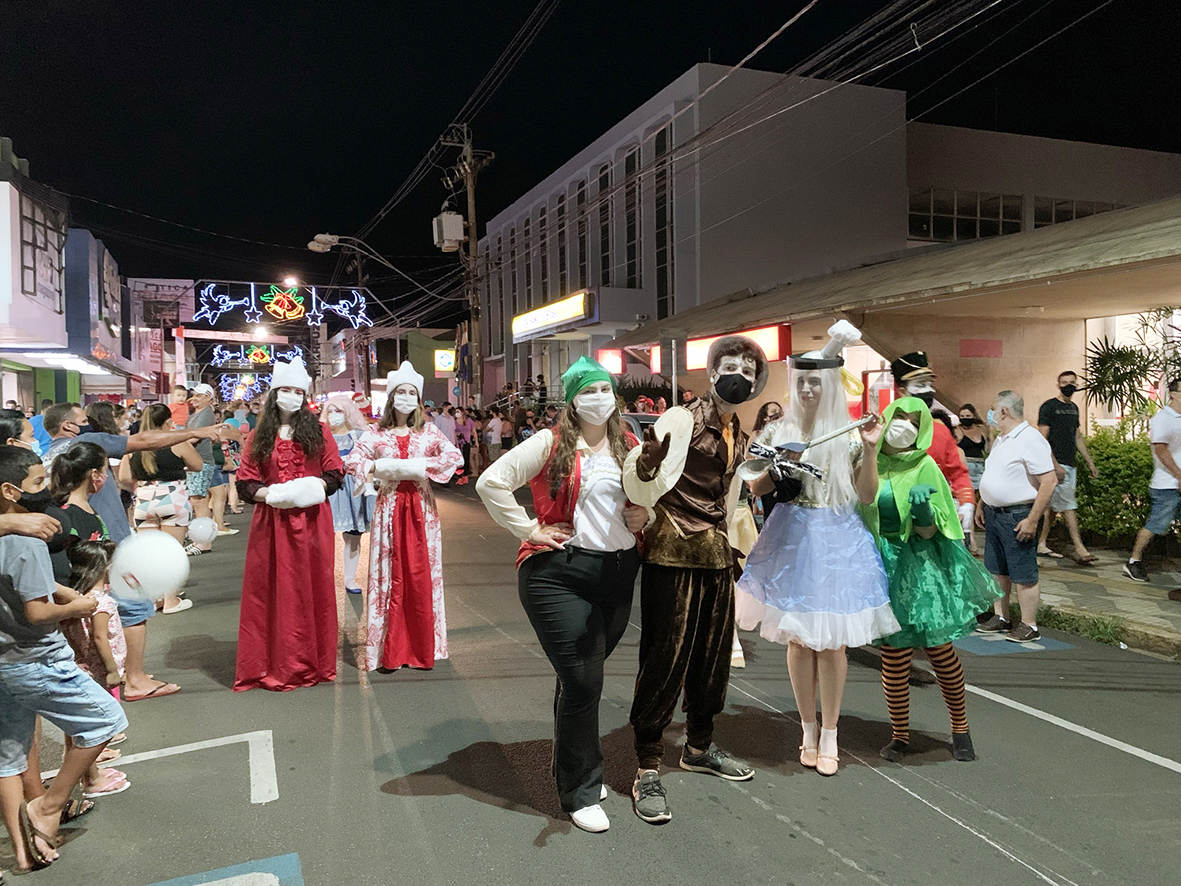 Parada Natalina contou com apresentações de grupos de dança, banda, teatro e samba