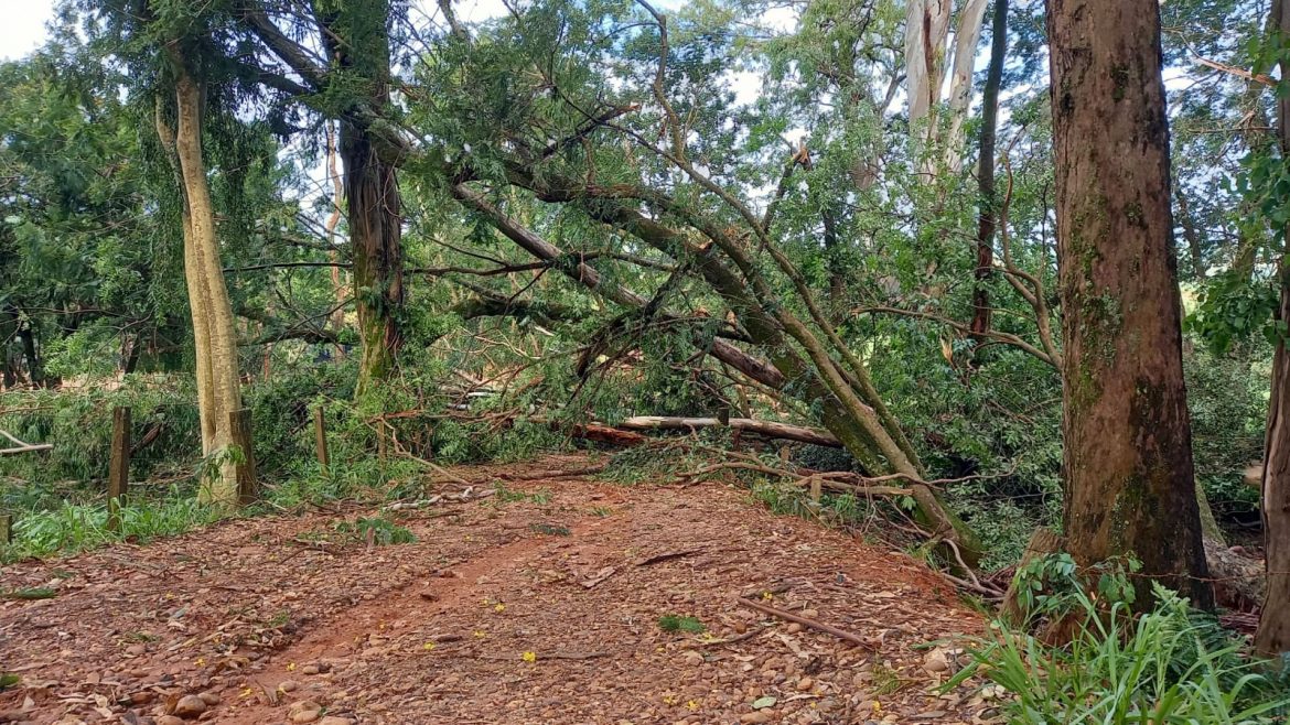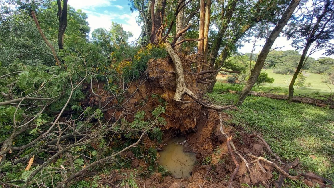 Há relatos de muitas outras árvores de grande porte que foram arrancadas, e também lavouras e pomares danificados pelo granizo.