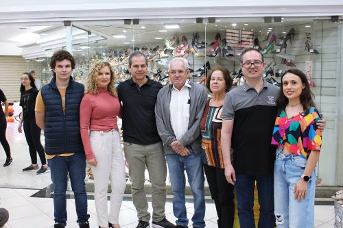 O fundador da Comander Calçados, Sr. Aldemir Alves da Rocha e a esposa Teresinha, filhos Junior e Rodrigo, noras Daniela e Elisete e neto Marcos Vinícius