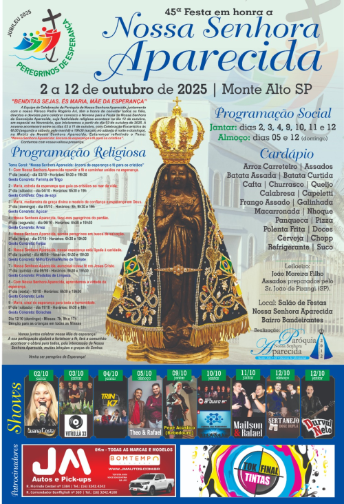 Monte Alto se prepara para celebrar com fé e alegria a 45ª Festa em honra a Nossa Senhora Aparecida, a padroeira do Brasil.