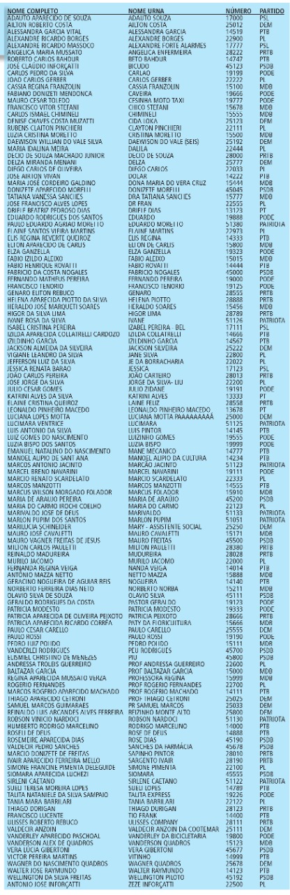 Na lista ao lado, disponibilizada no site divulgacandcontas.tse.jus.br você confere a lista completa dos candidatos, já com o seu nome de urna e o número definidos. Desenvolvida pelo Tribunal Superior Eleitoral (TSE), a ferramenta permite consultar as candidaturas por município e cargo, acessar informações detalhadas sobre a situação dos candidatos que pediram registro de candidatura, bem como todos os dados declarados à Justiça Eleitoral, inclusive informações relativas às prestações de contas dos concorrentes.