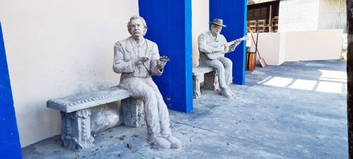 Na entrada, esculturas do Maestro Mário Veneri e dos compositores Carlos Gomes e Tom Jobim chamam a atenção