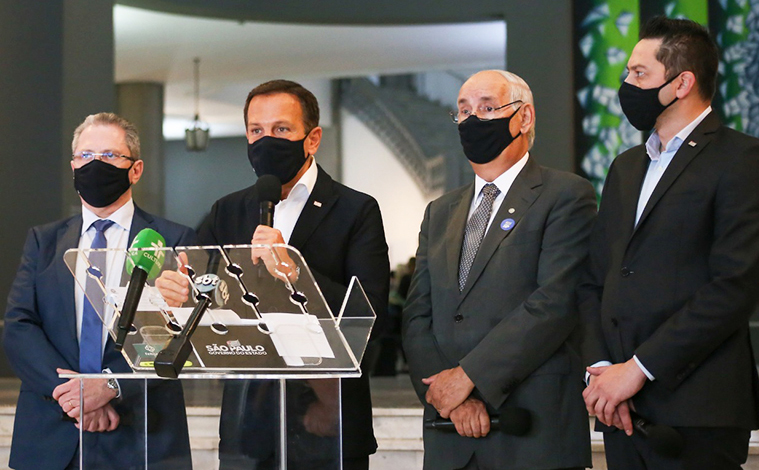 Na foto, Doria ladeado pelo secretário Jean Gorinchteyn, Edson Rogatti, da Fehosp e do secretário de Desenvolvimento do governo do estado, Marco Vinholi: reconhecimento